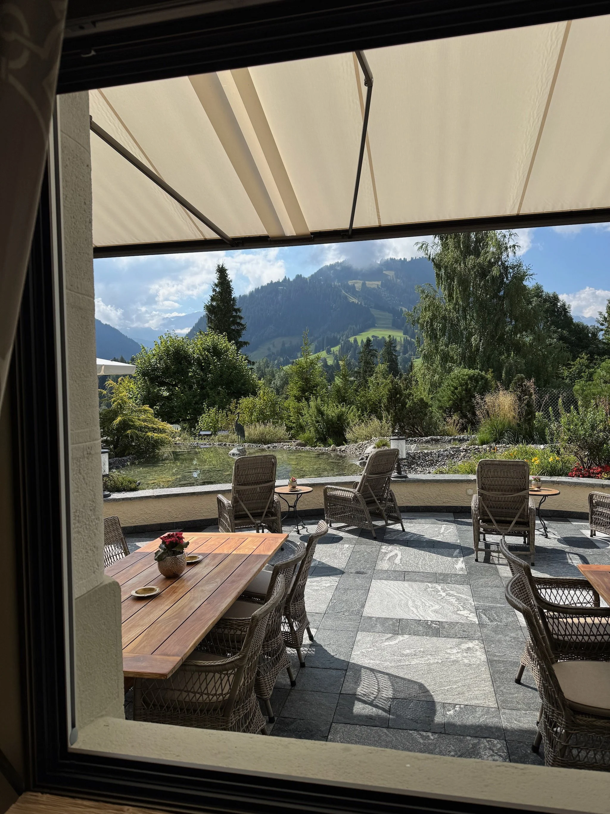 The Palace sits above the village with that “commanding” position you want in Gstaad: close enough to dip into town effortlessly, high enough to feel removed from it. The payoff is visual—mountain views and a sense of space that you don’t get down on the main stretch.