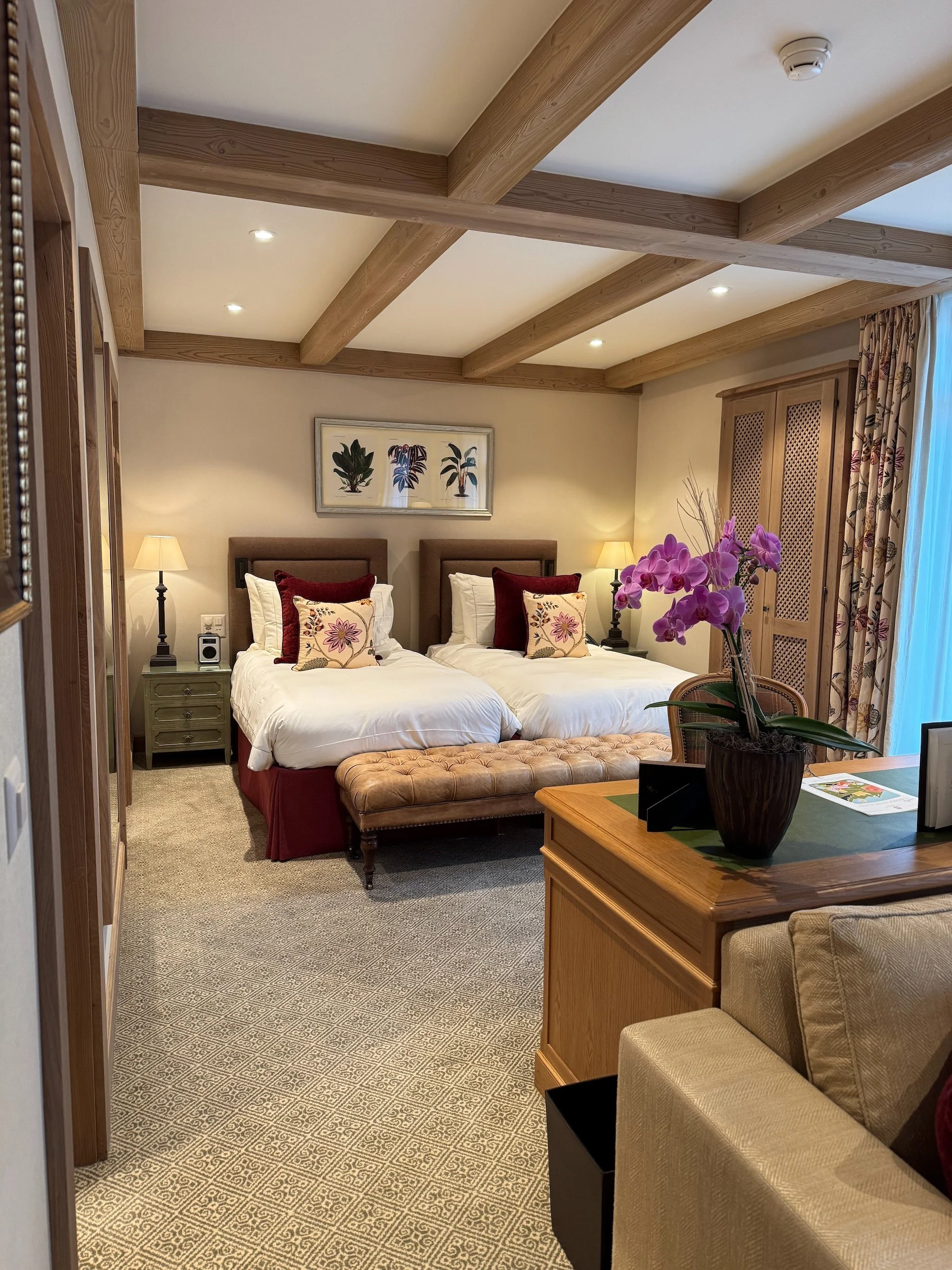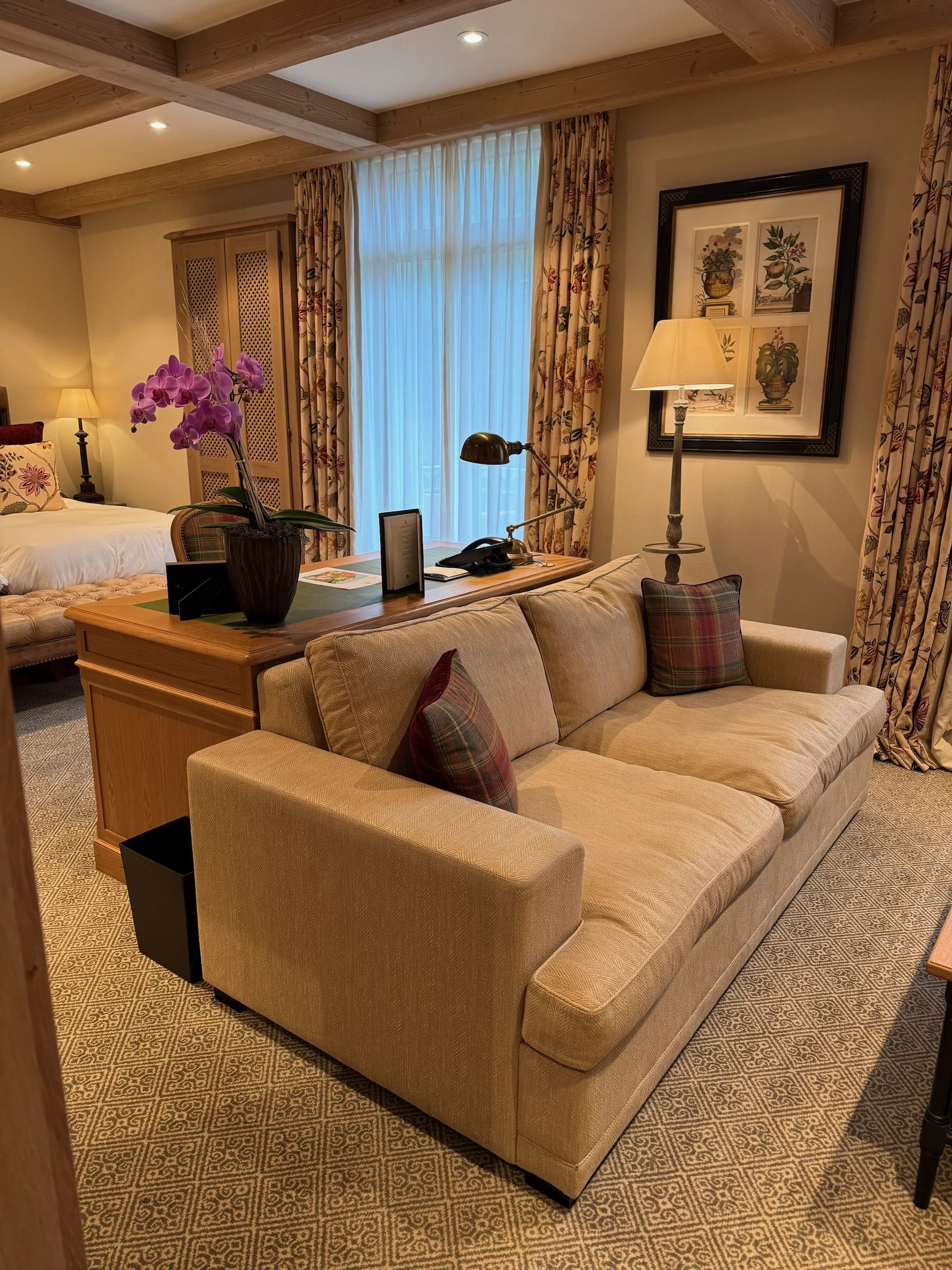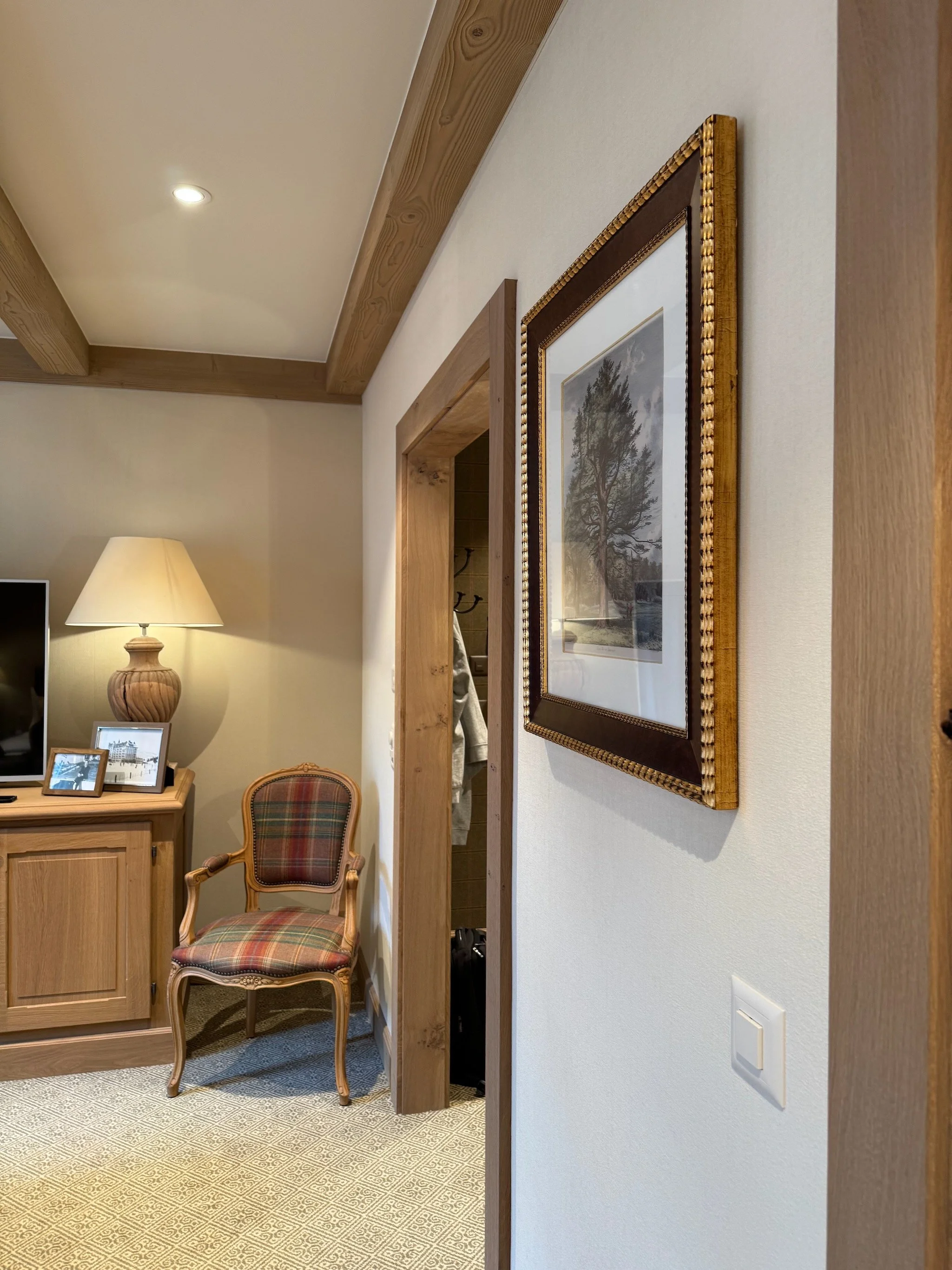 Rooms at the Palace feel properly spacious and genuinely cosy—warm colours, natural materials, alpine chic done with restraint. Even though the hotel is large by Gstaad standards (around 90 rooms and suites), it doesn’t translate into “big hotel vibes” once you’re in your room.