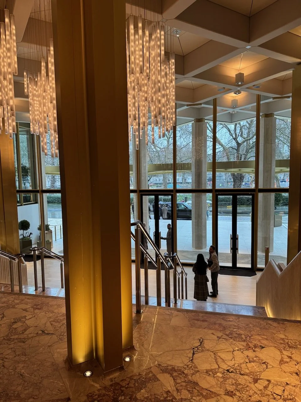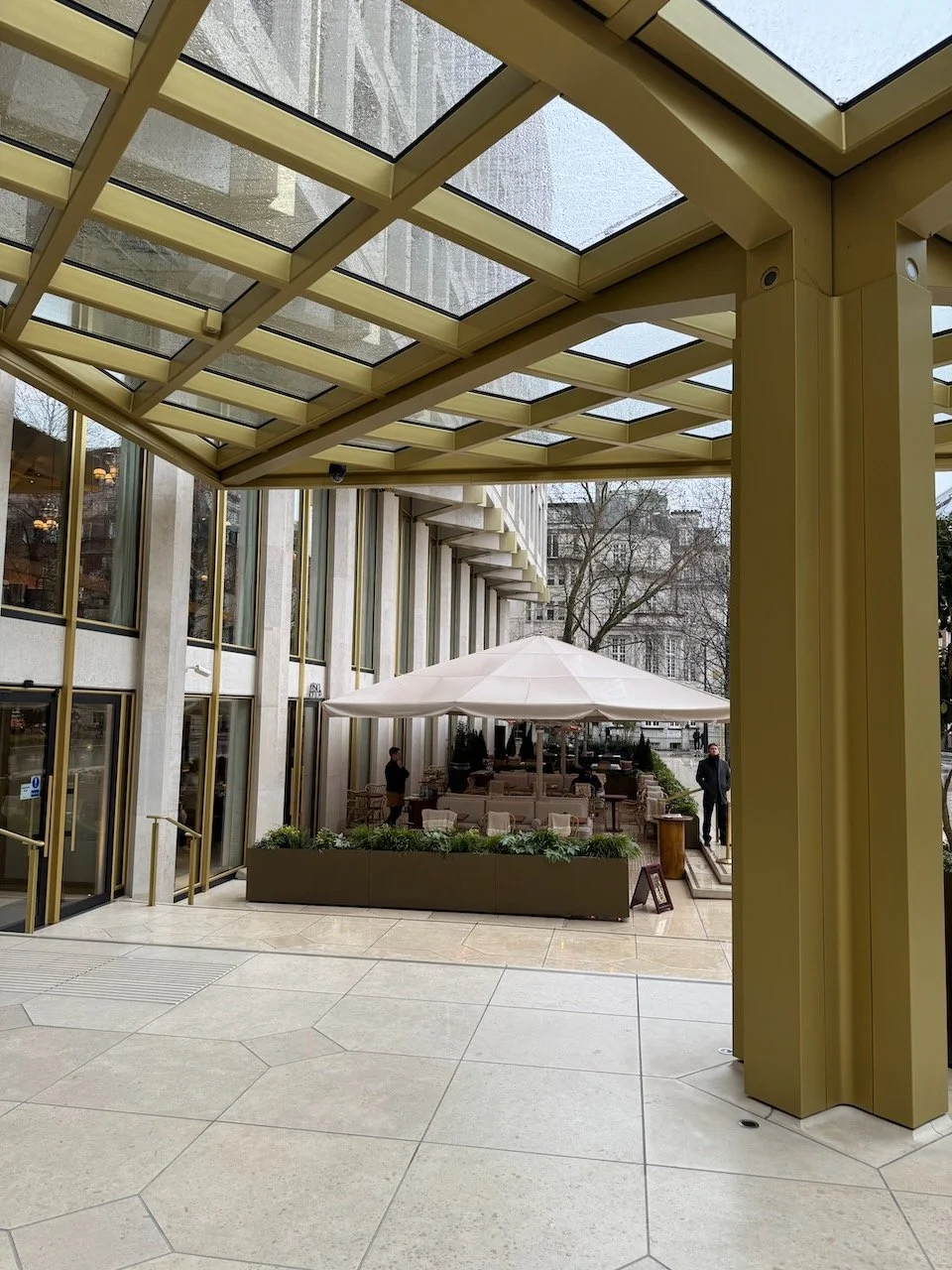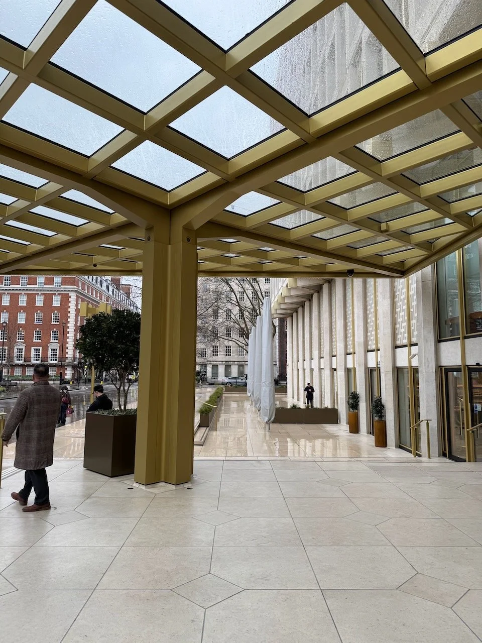 It’s the former U.S. Embassy, now turned into a hotel after a roughly £1bn transformation—and they had to preserve iconic elements like the rooftop eagle (made from B-52 aluminium). The vibe is big, grand, “power address.”